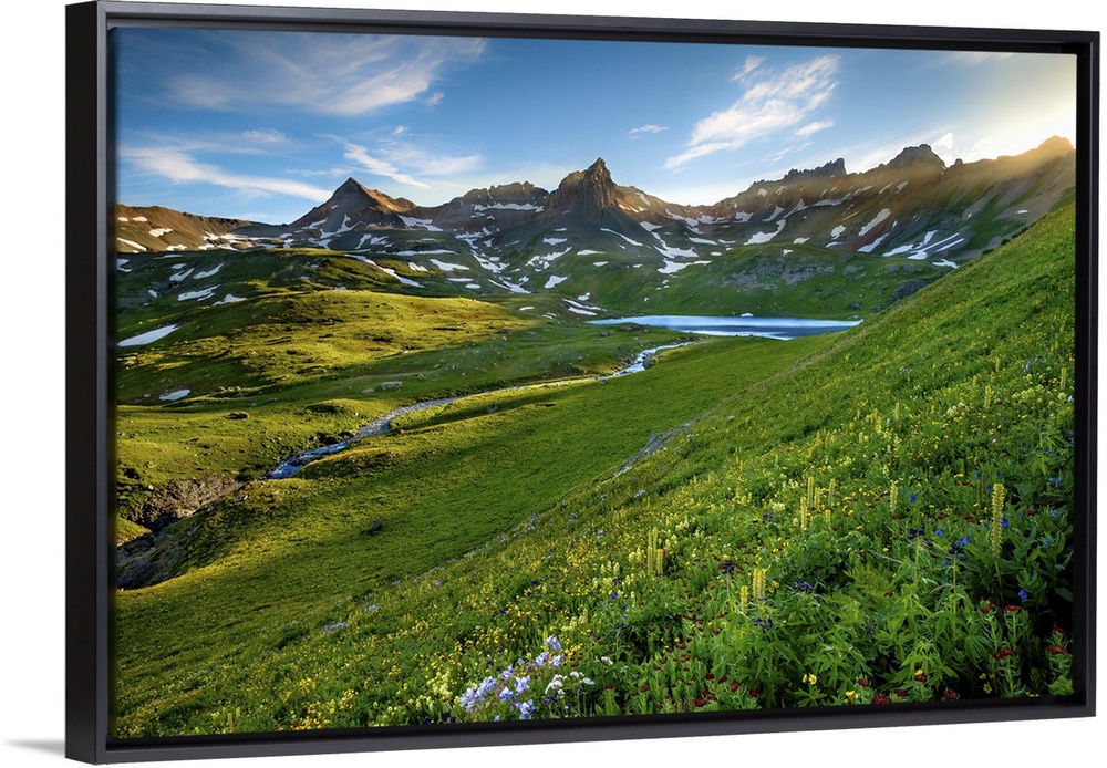 <p>Sunset Over Upper Ice Lake and Wild Flowers, Ice Lake Basin</p>