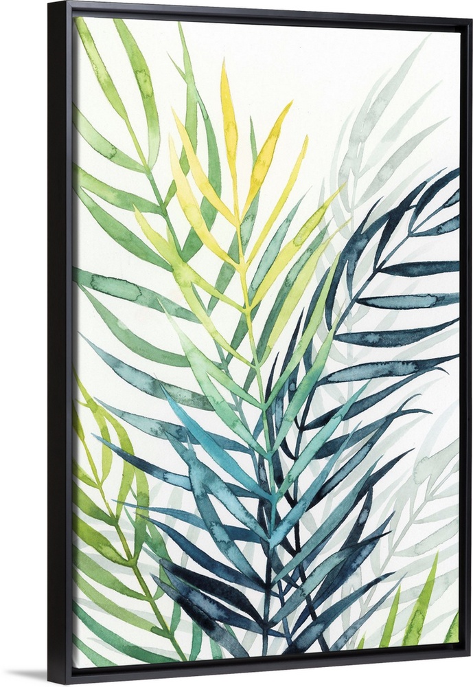 Art Bohemian Living Room Art College Dorm Décor Decorative Art Florals Leaves Tropical Flowers Green Wall Art Painting Grace Popp Watercolor
