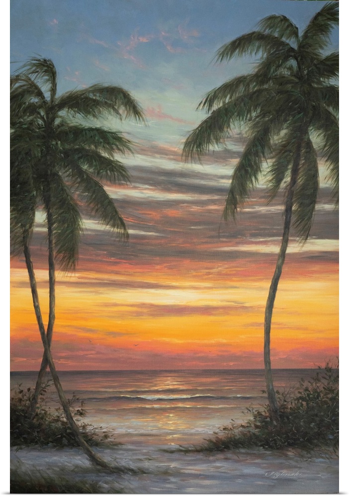 Art Contemporary Art Martin Figlinski Landscapes Beaches Beach Sunsets Seascapes Trees Palm Painting