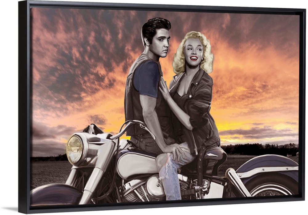 <p>Digital fine art image of Marilyn and Elvis on a motorcycle.</p>