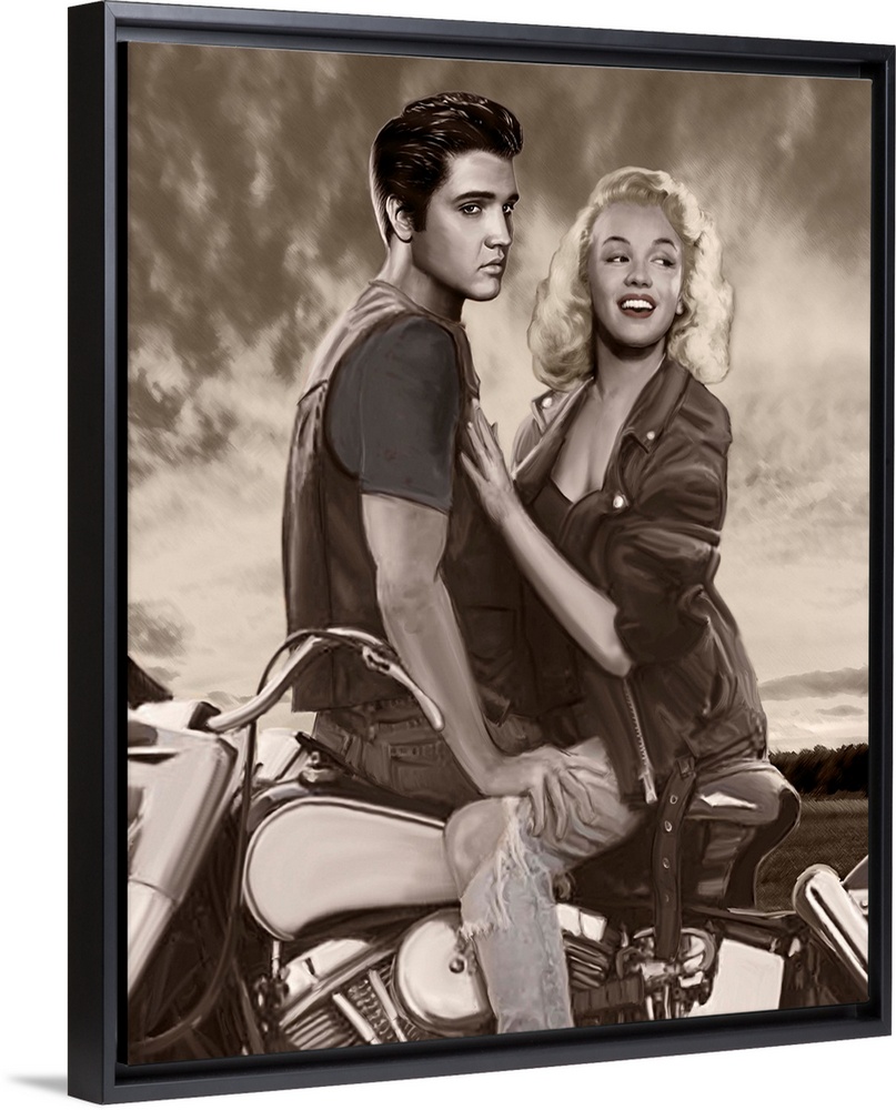<p>Digital fine art image of Marilyn and Elvis on a motorcycle.</p>