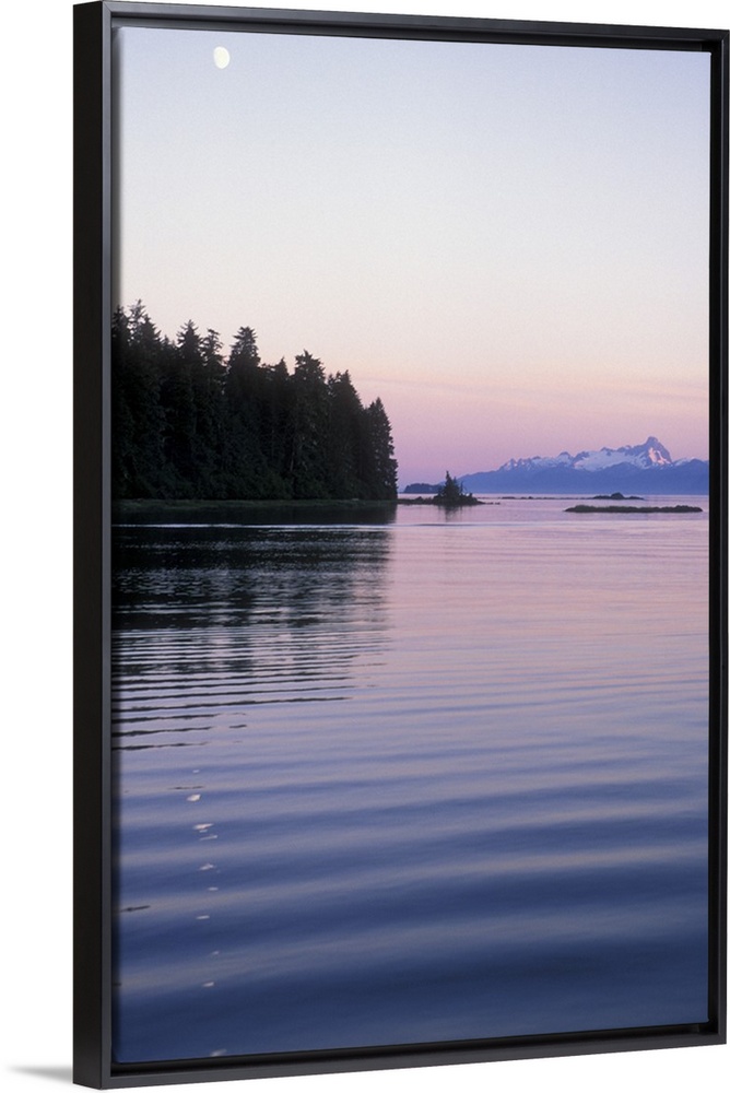 <p>Sunset scenic near Frederick Sound, moonrise, Southeastern Alaska.</p>