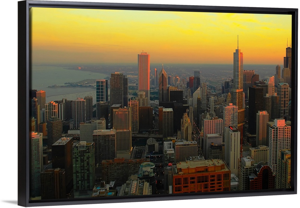 <p>Large wall docor of the downtown Chicago skyline at sunset.</p>