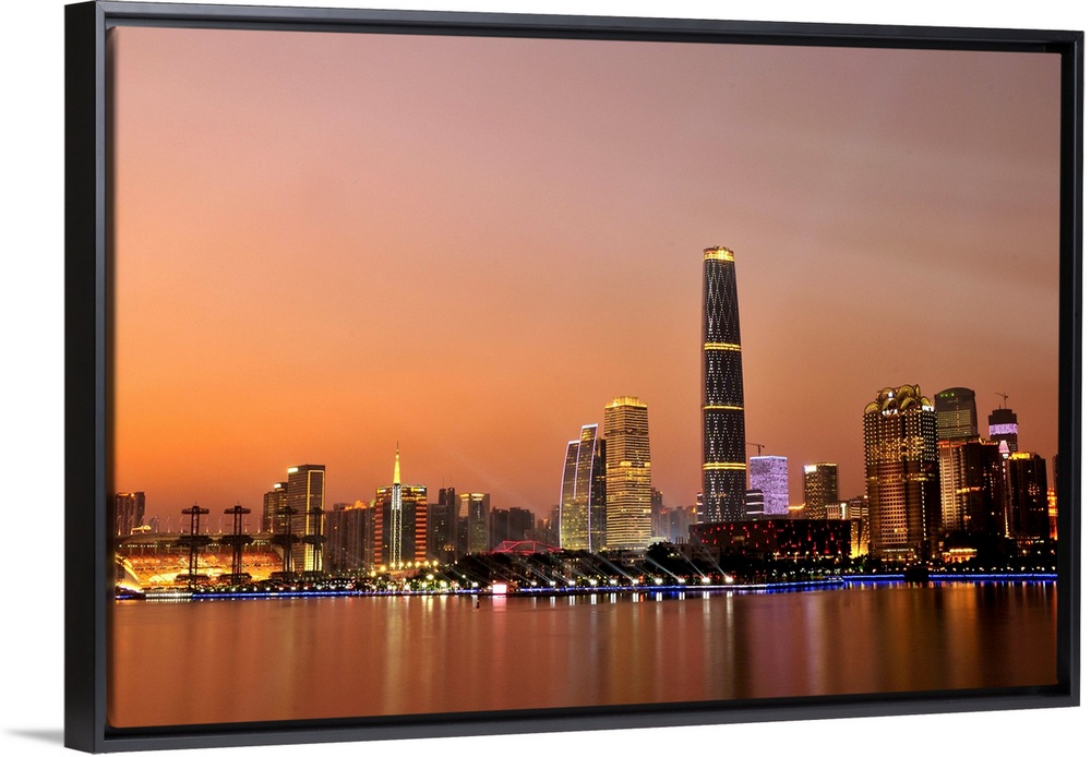 <p>Sunset view of Central Business Centre of Guangzhou, alao named Zhujiang New Town. The highest skyscraper is Guangzhou International Financial Centre, which ranks Top 2 in height in China.</p>