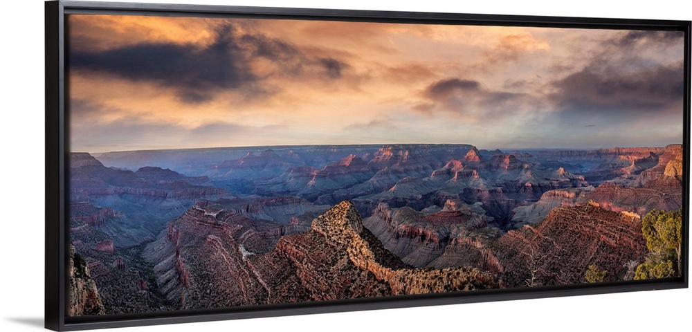 <p>Sunset with clouds panorama in the Grand Canyon.</p>