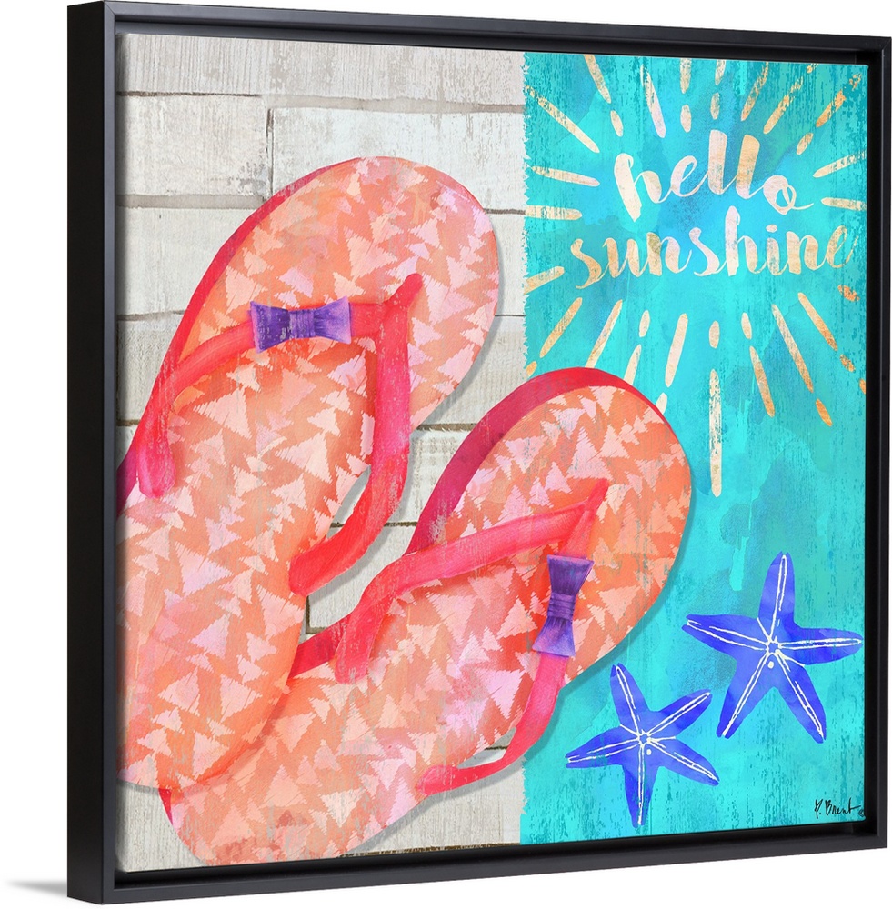 <p>Square Summer decor with flip flops, starfish, and "hello sunshine" written at the top.</p>