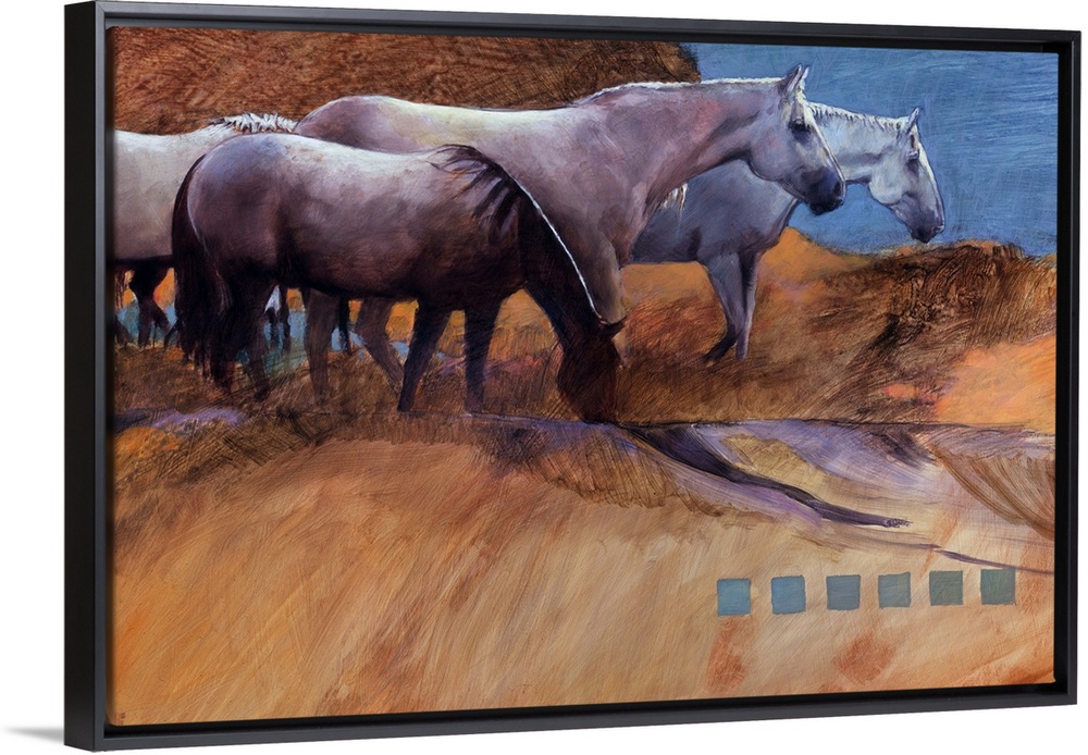 <p>Contemporary western theme painting of horses grazing on desert plains.</p>