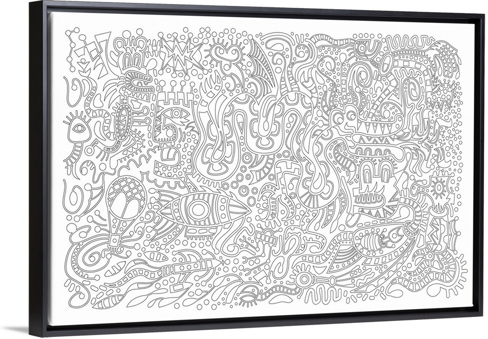 <p>Black and white line art of an abstract mural.</p>