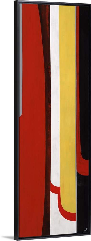 <p>Abstract painting with a mid-century feel of bold colors in thick vertical lines.</p>