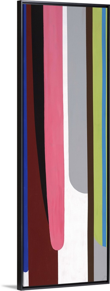 <p>Abstract painting with a mid-century feel of bold colors in thick vertical lines.</p>