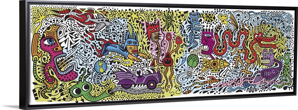 <p>Contemporary mural artwork of monsters and other abstract figures in a confusion of colors and patterns.</p>
