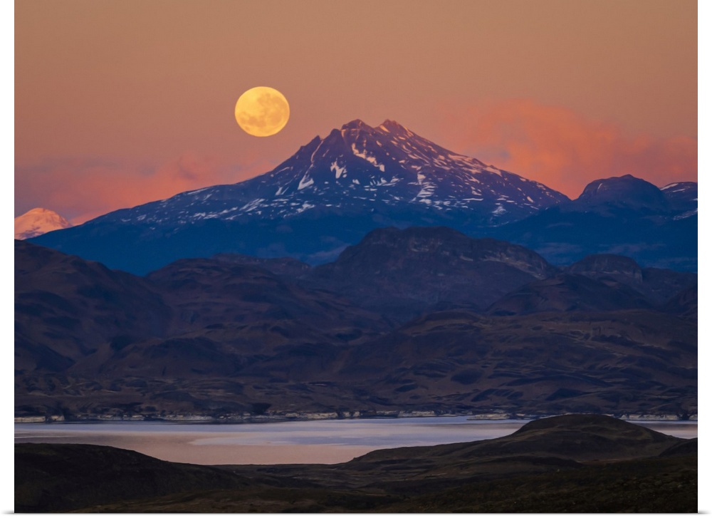 <p>Supermoon at sunrise in Torres del Paine National Park Patagonia, Chile</p>