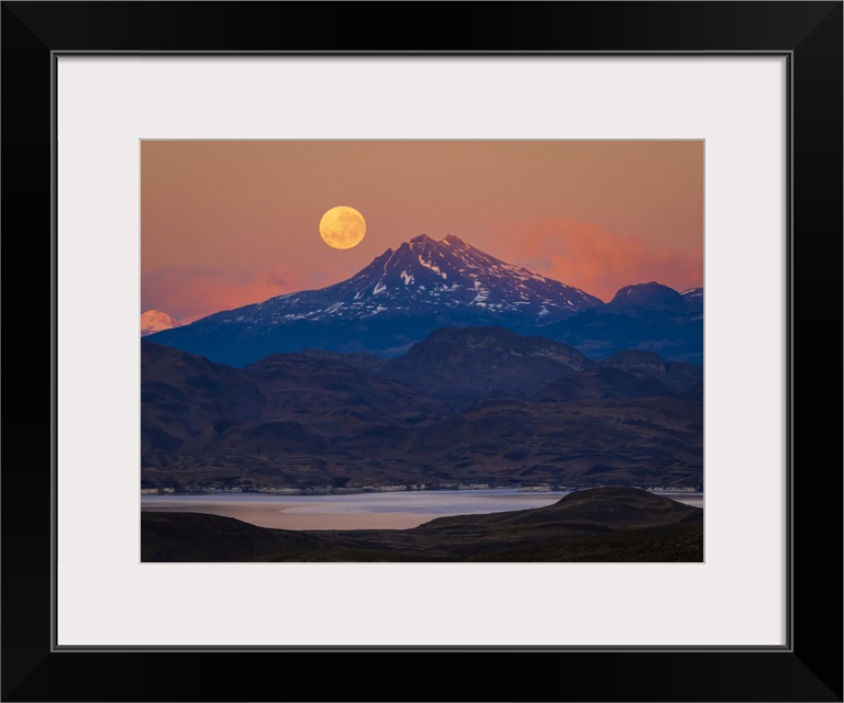 <p>Supermoon at sunrise in Torres del Paine National Park Patagonia, Chile</p>