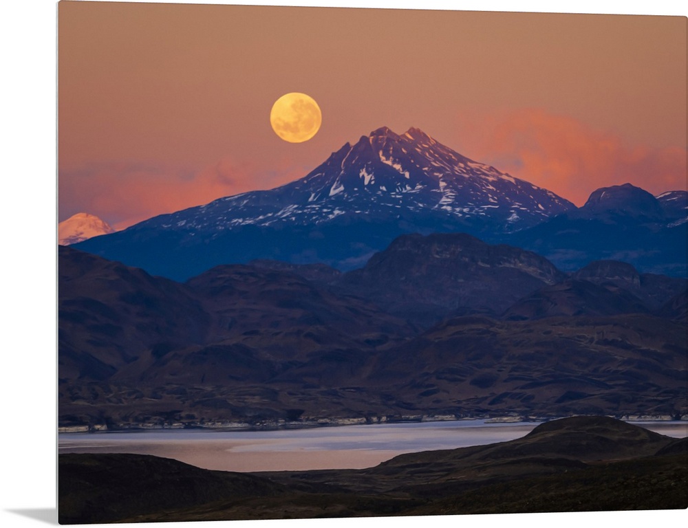 <p>Supermoon at sunrise in Torres del Paine National Park Patagonia, Chile</p>