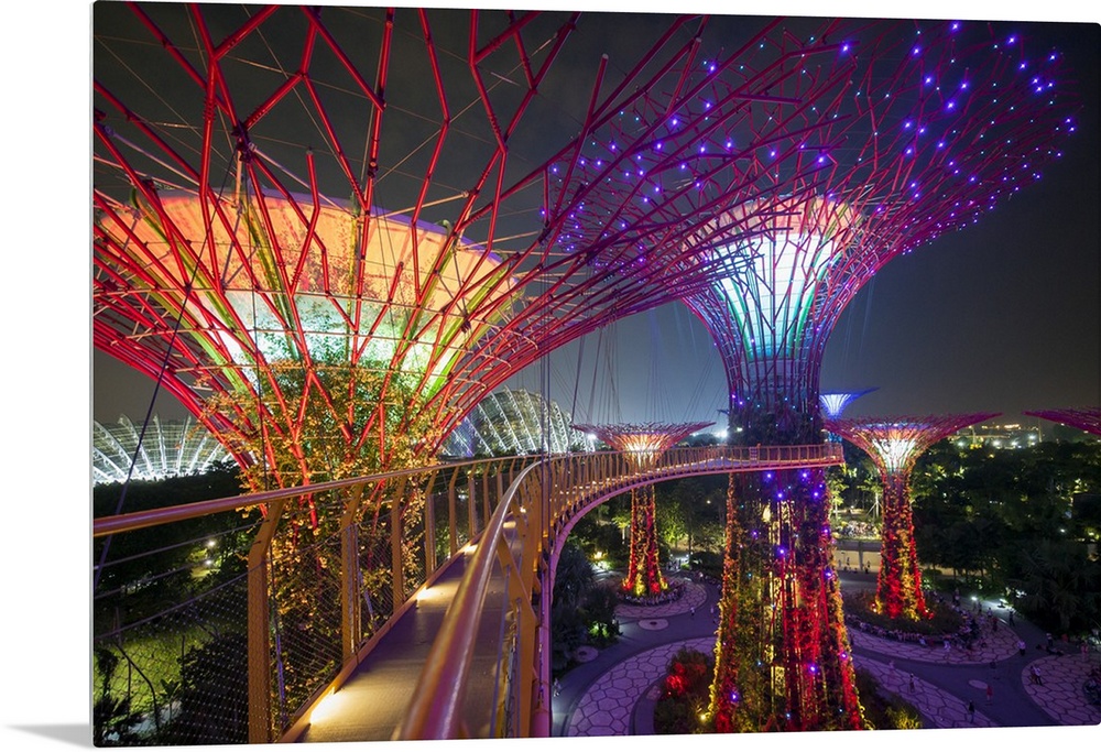 <p>Supertrees at Gardens by the Bay, illuminated at night, Singapore, Southeast Asia</p>