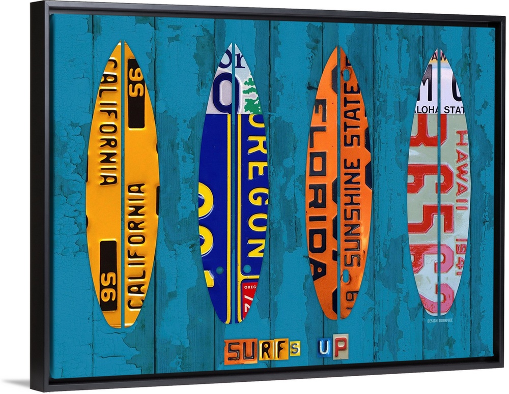 Art Blue Wall Art College Dorm Décor Sports Fanatic Contemporary Art Mixed Media Art Sports Surfing