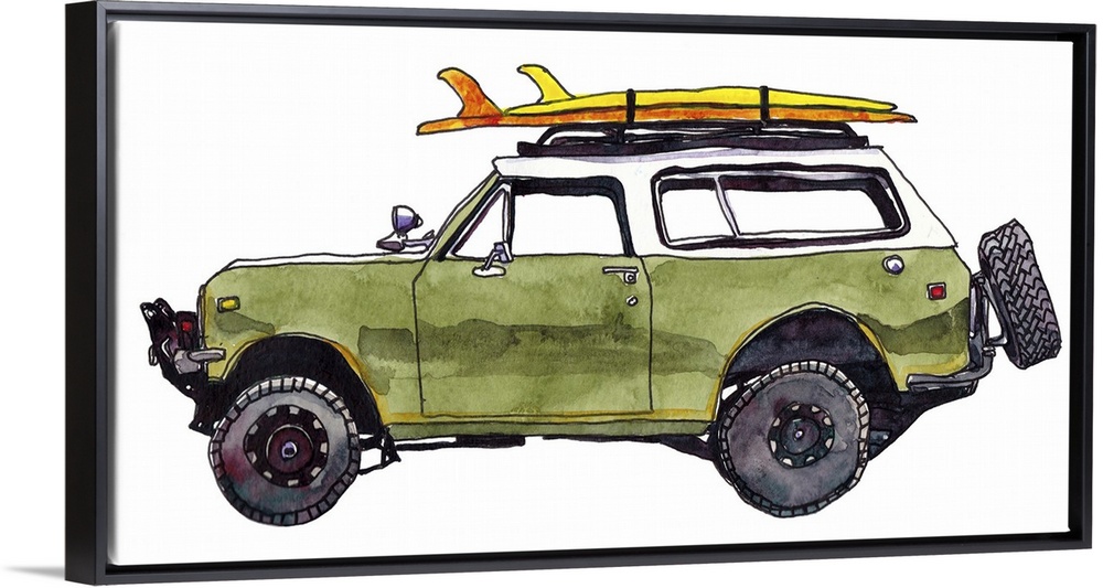 Art Beach House Décor Contemporary Art Green Wall Art Paul McCreery Painting Transportation Car Classic and Vintage Cars Watercolor
