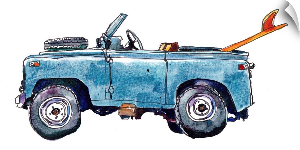 Art Blue Wall Art Contemporary Art Lake House Art Paul McCreery Painting Transportation Car Classic and Vintage Cars Watercolor