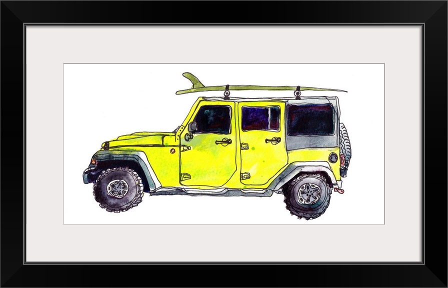 Art Children's Art Boys Room Contemporary Art Lake House Art Paul McCreery Painting Transportation Car Watercolor Yellow Wall Art Lemon Yellow