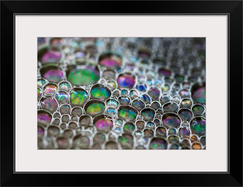 <p>Surf leaves colourful bubbles on the beach; Cannon Beach, Oregon, United States of America</p>