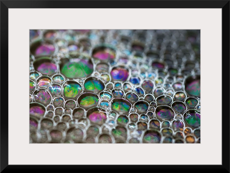 <p>Surf leaves colourful bubbles on the beach; Cannon Beach, Oregon, United States of America</p>