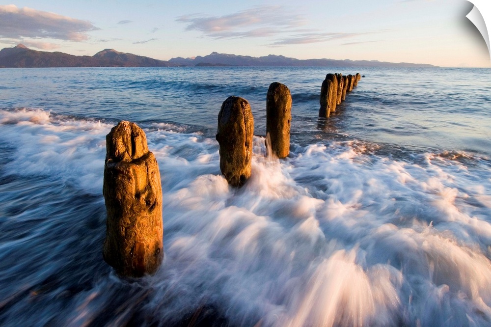 <p>Old Dock pilings, Beach, Waves; Homer Spit, Homer, AK; Summer</p>