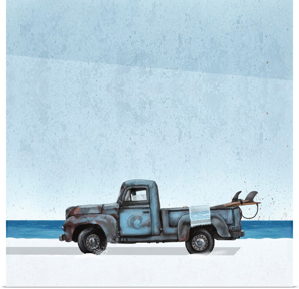 Art Coastal Blue Wall Art Decorative Art Painting Transportation Truck