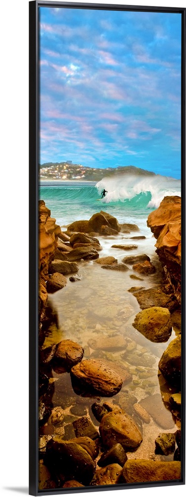 <p>Surfer riding wave in sea, Avoca Beach, New South Wales, Australia.</p>