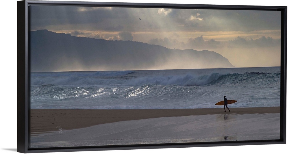 <p>Surfer walking on the beach, Hawaii, USA</p>