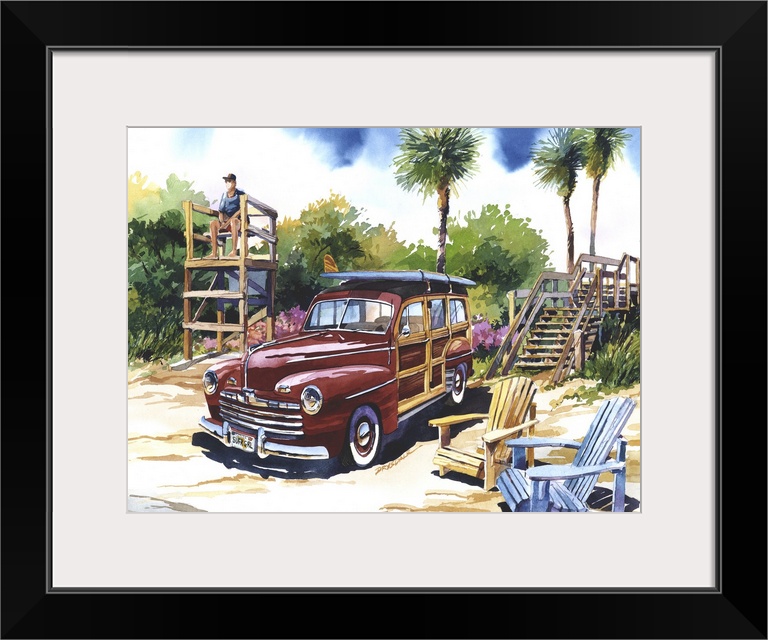 Art Decorative Art Bill Drysdale Painting California Transportation Car Classic and Vintage Cars Watercolor