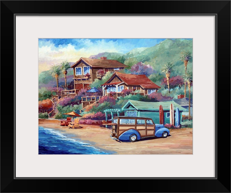 Art Decorative Art Bill Drysdale Beaches Painting California Transportation Car Classic and Vintage Cars Watercolor