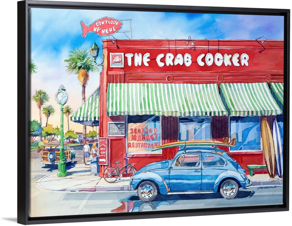<p>Watercolor painting of the famous landmark, The Crab Cooker, in Newport Beach, CA.</p>