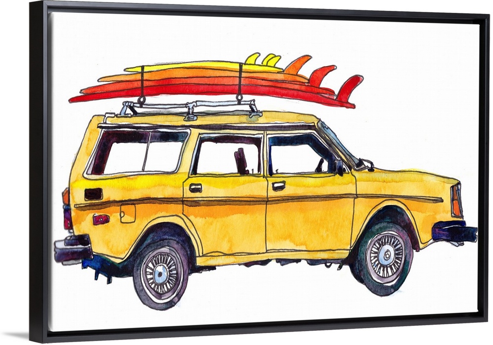 Art Children's Art Boys Room Tweens & Teens Contemporary Art Paul McCreery Painting Sports Surfing Transportation Car Classic and Vintage Cars Watercolor Yellow Wall Art