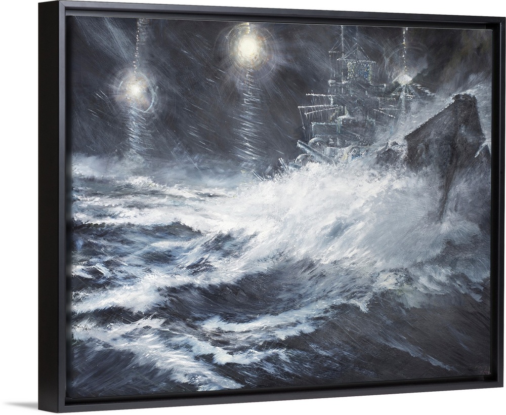 <p>Contemporary painting of a ship riding the high seas during a rough storm.</p>