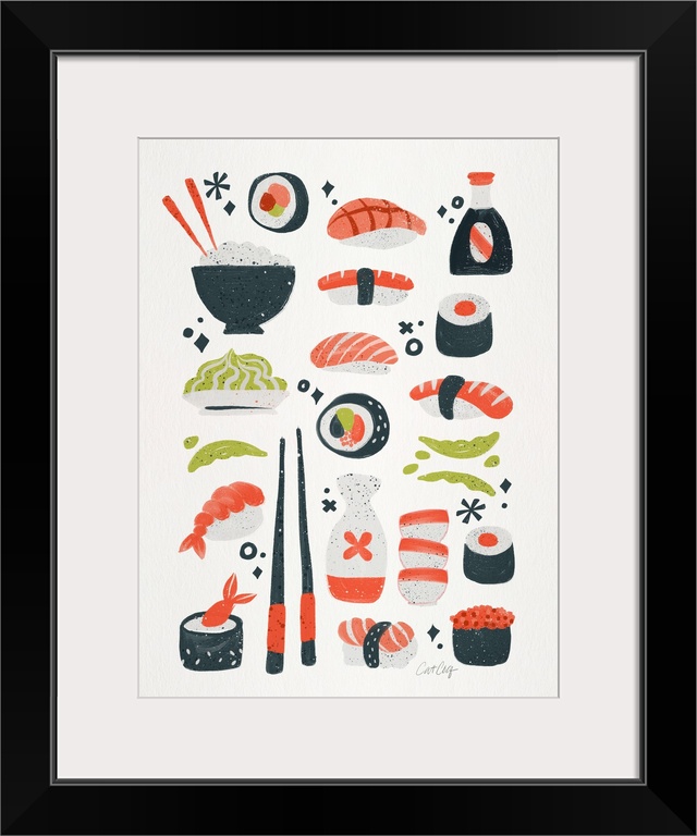 Art Cat Coquillette Dopamine Decor Decorative Art Food and Drink Food Sushi Asian Graphic Art