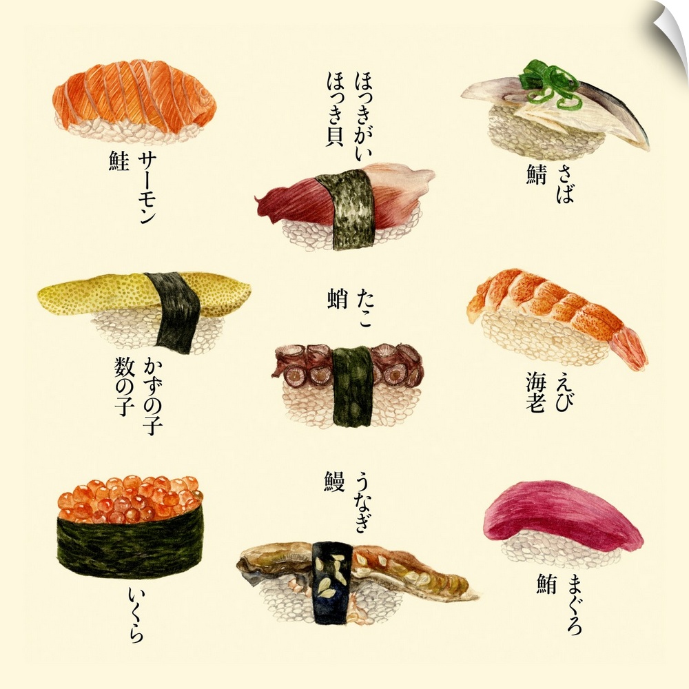 Art Kitchen Wall Art Asian Art Decorative Art Food and Drink Food Sushi Painting Melissa Wang