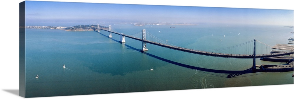 <p>Suspension bridge across a bay, Bay Bridge, San Francisco Bay, San Francisco, California, USA</p>