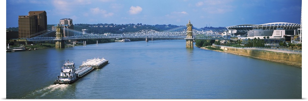 <p>Suspension bridge across the Ohio River, Cincinnati, Ohio, USA</p>