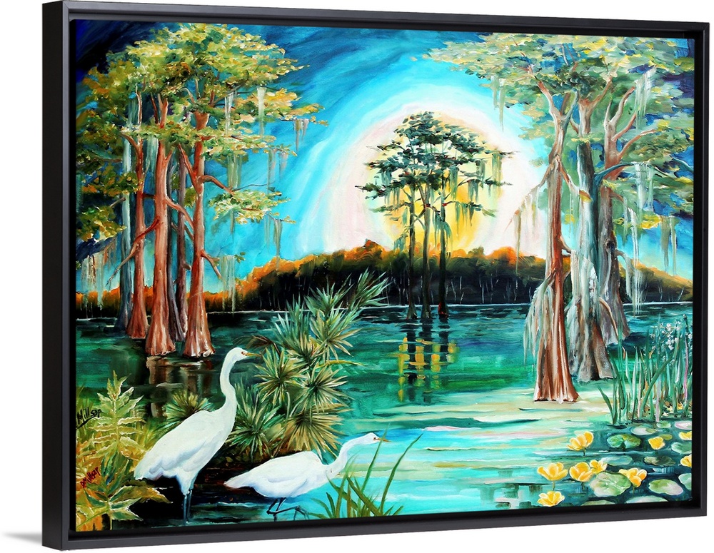 Art Transitional Contemporary Art Green Wall Art Landscapes Marsh and Swamp Diane Millsap Painting Louisiana Heron and Egret
