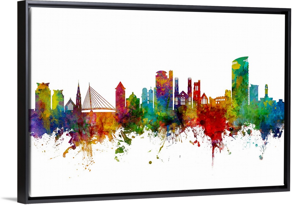 <p>Watercolor art print of the skyline of Swansea, Wales, United Kingdom.</p>
