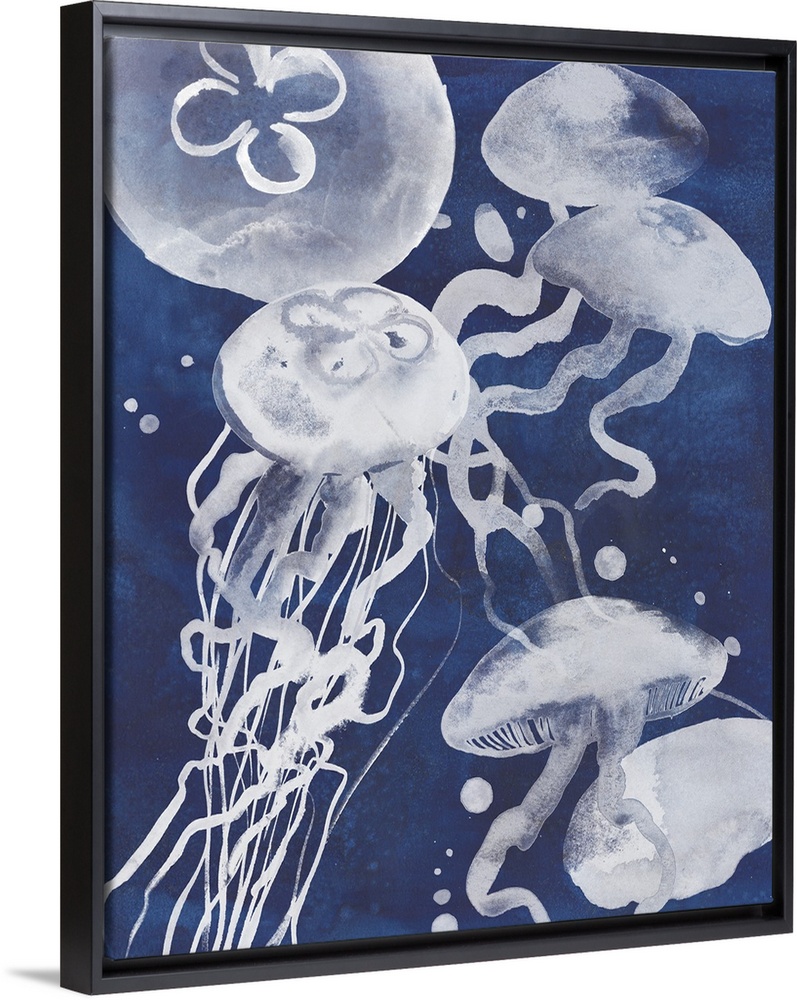Art Coastal Blue Wall Art Decorative Art Painting Grace Popp Watercolor Wildlife Marine Life Jellyfish