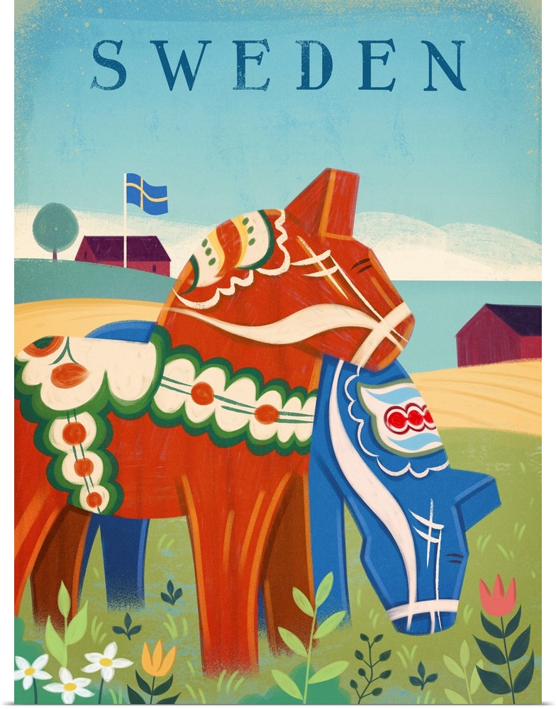 Art Decorative Art Graphic Art Landscapes Sweden Travel Posters Contemporary Travel Posters Martin Wickstrom Wildlife Horse