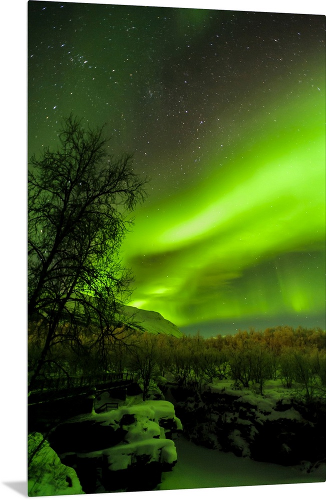 <p>Sweden, Norrbotten, Abisko. Aurora Borealis (Northern Lights) over Abisko Canyon.</p>