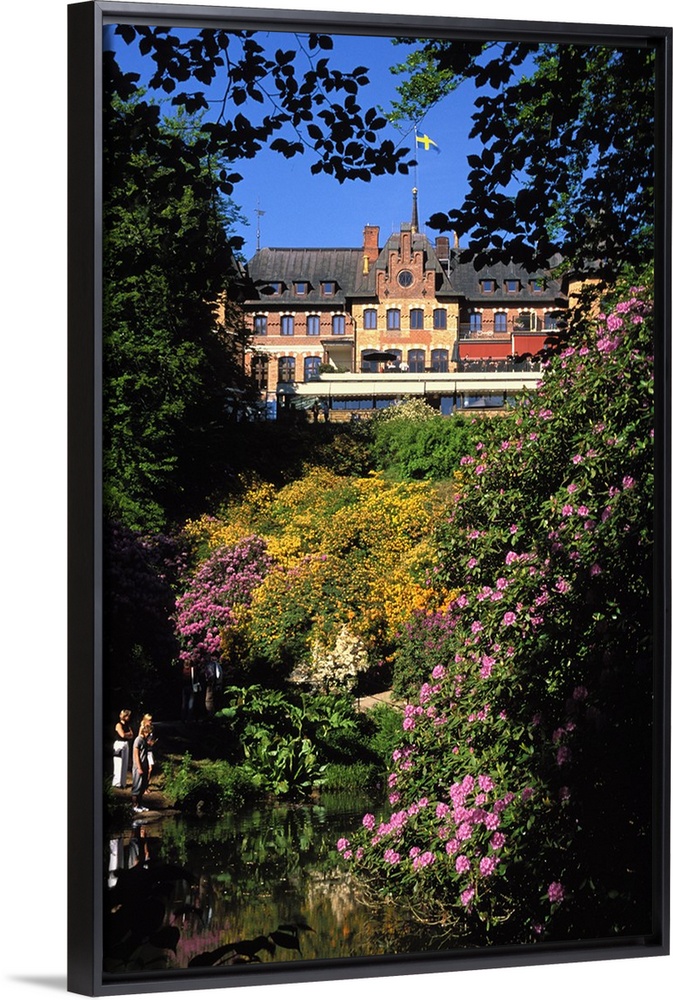 <p>Svezia-Helsingborg-Castello di Sofiero-Il parco con la valle dei rododendri e un laghetto.</p>