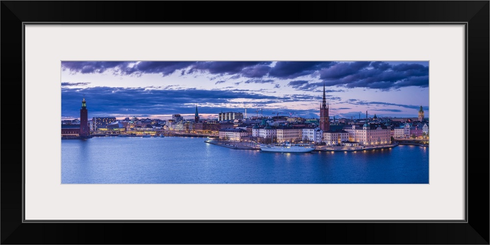<p>Sweden, Stockholm, Gamla Stan, Old Town, elevated city view with Riddarholmeskyrkan church, dusk</p>