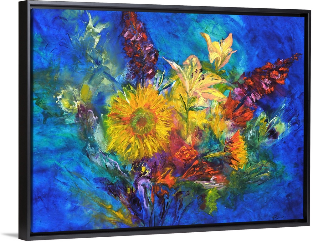 <p>Contemporary painting of a colorful floral abstract.</p>