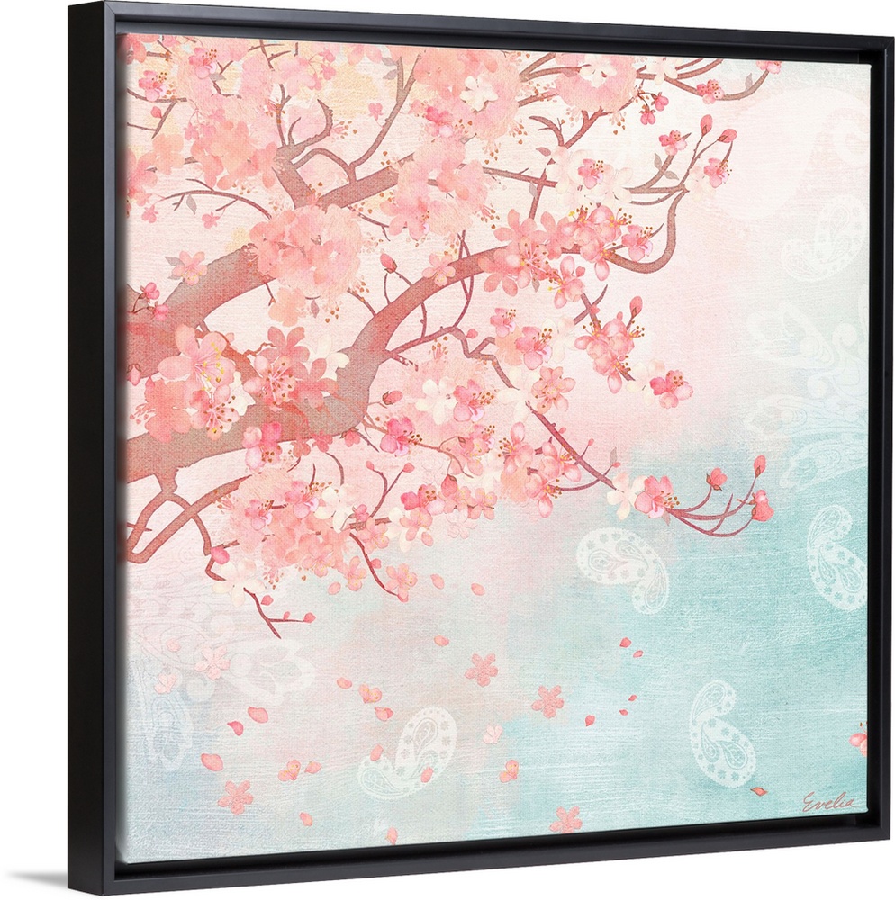 Art Blue Wall Art Decorative Art Evelia Designs Florals Cherry Blossom Graphic Art Pink Wall Art