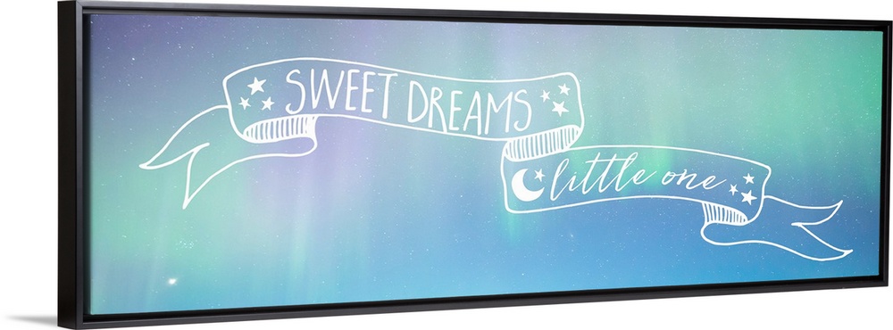 <p>Sentimental message on a banner decorated with stars, over an aurora borealis.</p>