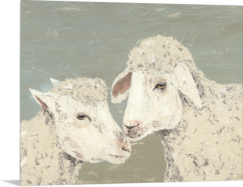 <p>Contemporary painting of two ivory lambs with textured brushstrokes all over.</p>