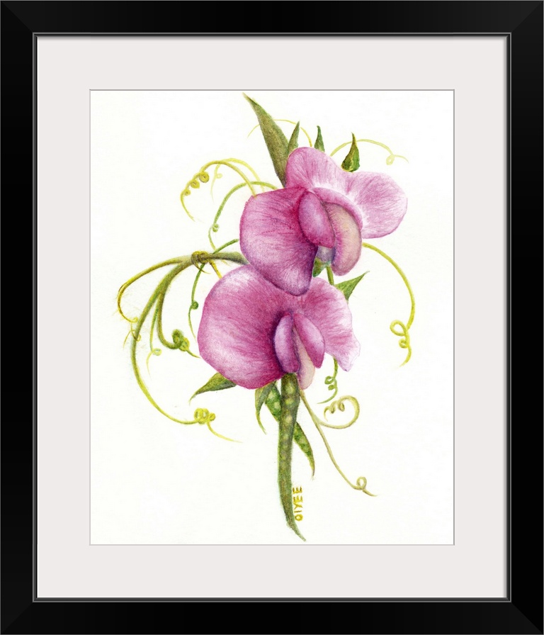 <p>Contemporary painting of sweet pea flowers on a white background.</p>